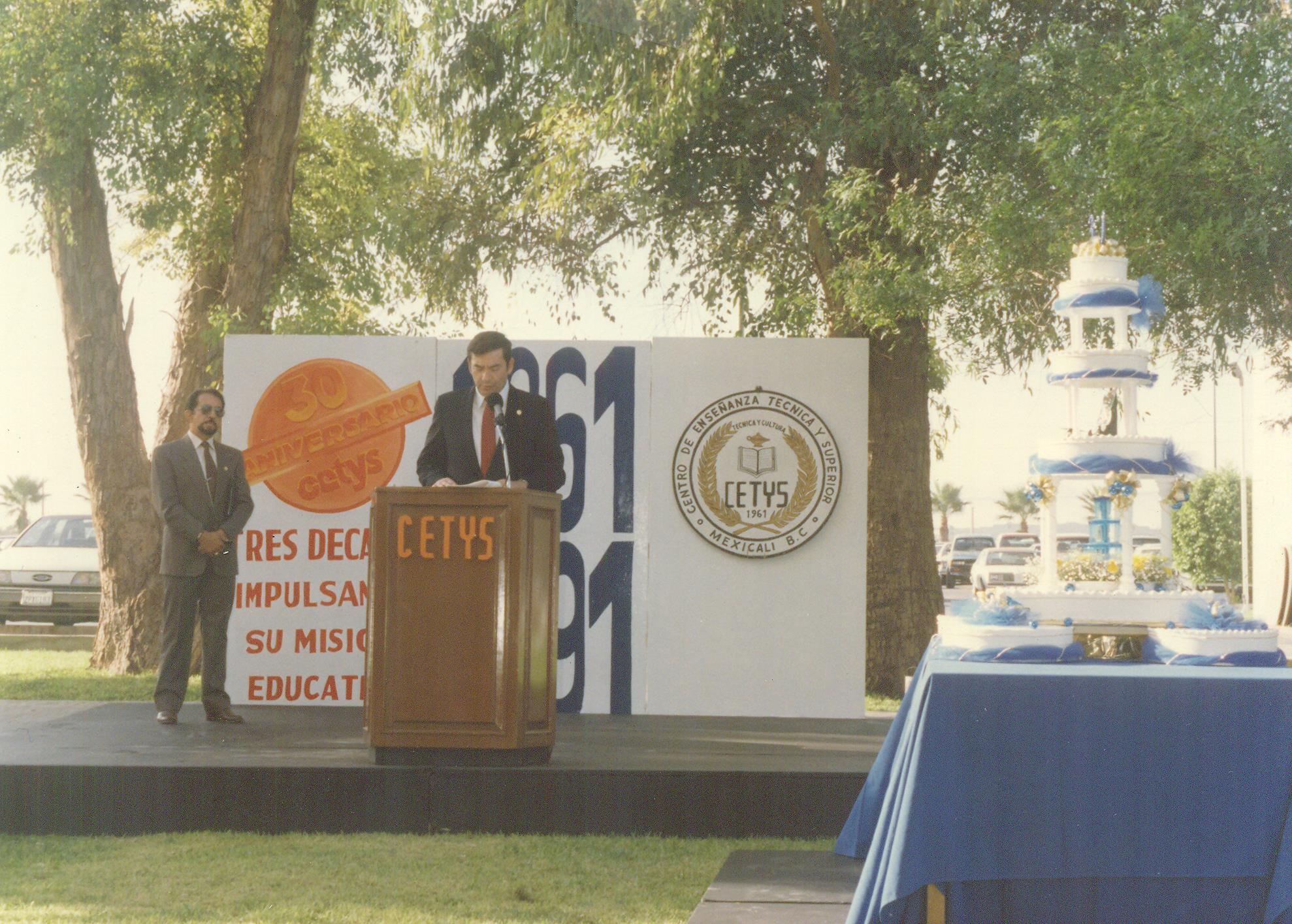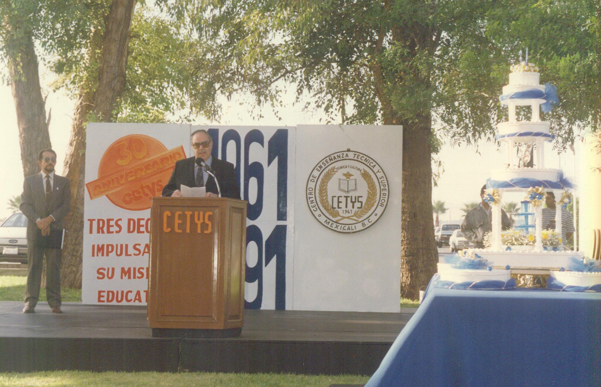 Resumen : El Trigésimo aniversario de CETYS Universidad (IENAC), Institución particular de excelencia educativa, acreditada internacionalmente, que ahora contribuyen en la transformación de esta región fronteriza. Aprovechó el Rector del IENAC, Ing. Jesus Alfonso Marín Jiménez para destacar el apoyo de ser forjador de mejores décadas, impulsando su misión educativa para el desarrolllo a su comunidad. Participó en la celebración el Lic. Ignacio A. Guajardo (Consejero, fundador y 1er. presidente del IENAC), Prof. Sergio Pablo Martínez (Moderador), Ing. Jesús Alfonso Marín Jimenez (Rector 1978-1996), Lic. Héctor Sada Quiroga (Consejero) quienes colocaron la primera piedra durante la ceremonia de conmemoración de CETYS manifestó que ha forjado una historia de éxito desarrollando y sentando nuevas bases para el desarrollo de infraestructura educativa.